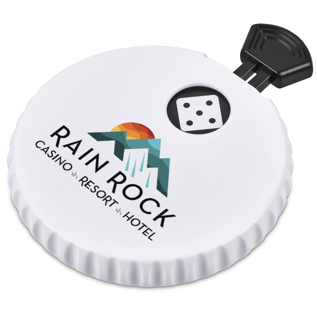 Press the button on this fun bottle opener to spin the disc inside. The window will then display a picture of a dice side, ranging from 1 - 6. So, in addition to using it as a bottle opener, you can make up fun games of chance to keep yourself and your friends entertained.