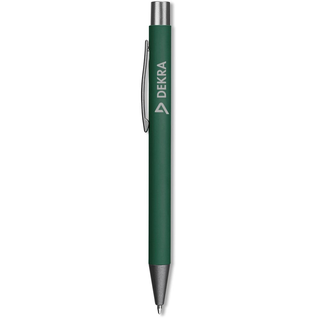 The rubberised finish of this metal pen gives it a pleasing tactile feel and an attractive appearance. Laser engraving offers a clean and precise effect which is both subtle and visible. The ball pen refill contains good quality, black German ink and will provide smooth, uninterrupted writing for a minimum of 1,500 metres. Presenting the pen in this transparent case gives it that impressive finishing touch.